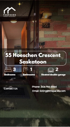 Spacious and bright 3-bedroom, 1-bathroom main floor suite located on the desirable East Side of Saskatoon. This rental includes an extra-large, heated double garage (720 sq ft | 24′ x 30′), perfect for DIY projects, workshops, or extra storage. A rare find in this area!